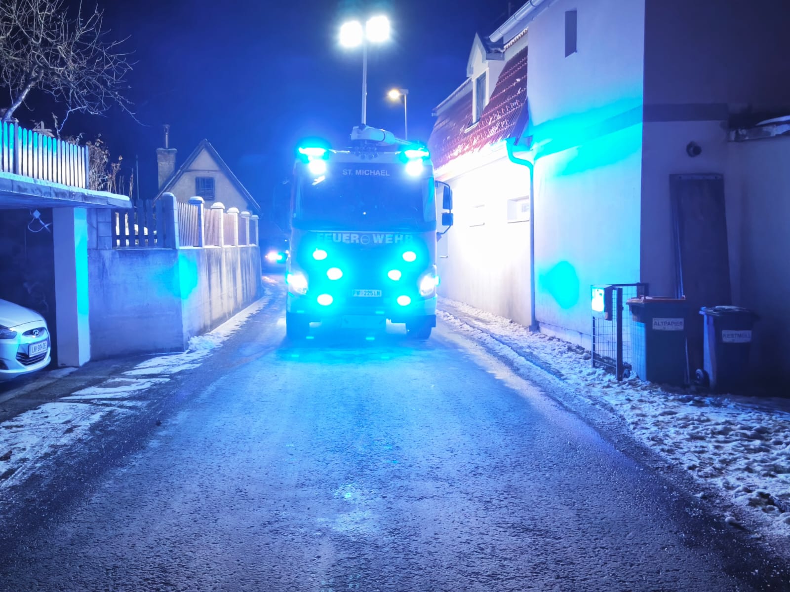 In der Nacht auf dem 19.01. wurden wir unsanft aus dem Schlaf gerissen. Nähe des Bahnhofes in St. Michael brannte ein Bauwaggon auf den Gleisen. Wir rückten umgehend mit